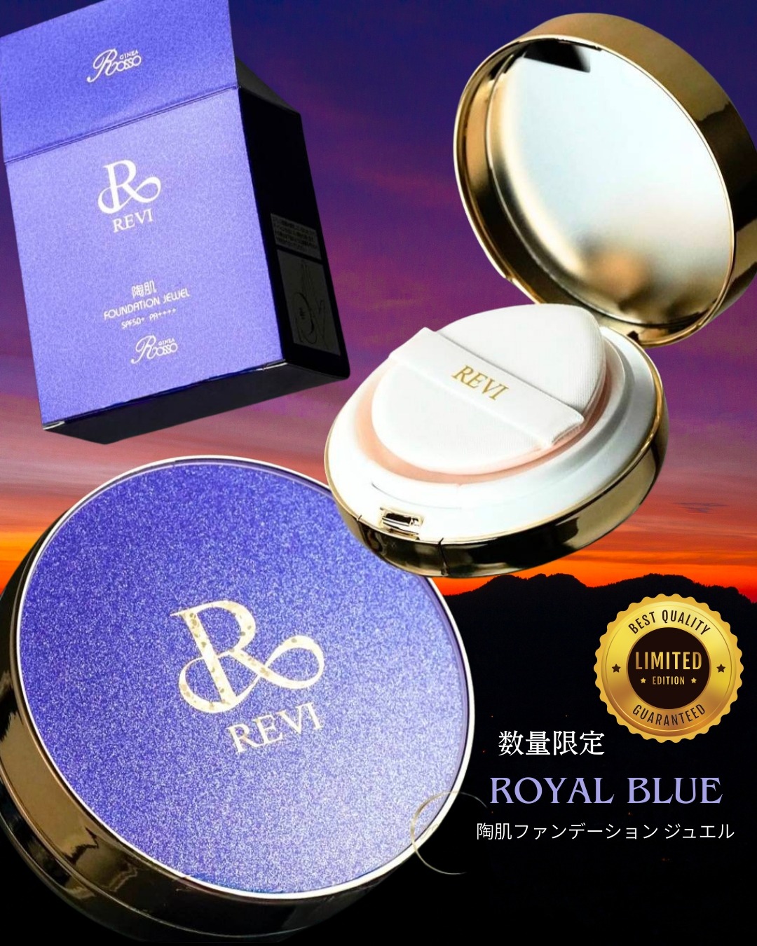 #陶肌ファンデーション #ジュエルシリーズ #ロイヤルブルー #REVI #ルヴィ #ファンデーション難民卒業 #美容液ファンデ #スキンケア発想 #ダイヤモンドパウダー #輝く肌 #ベースメイク革命
